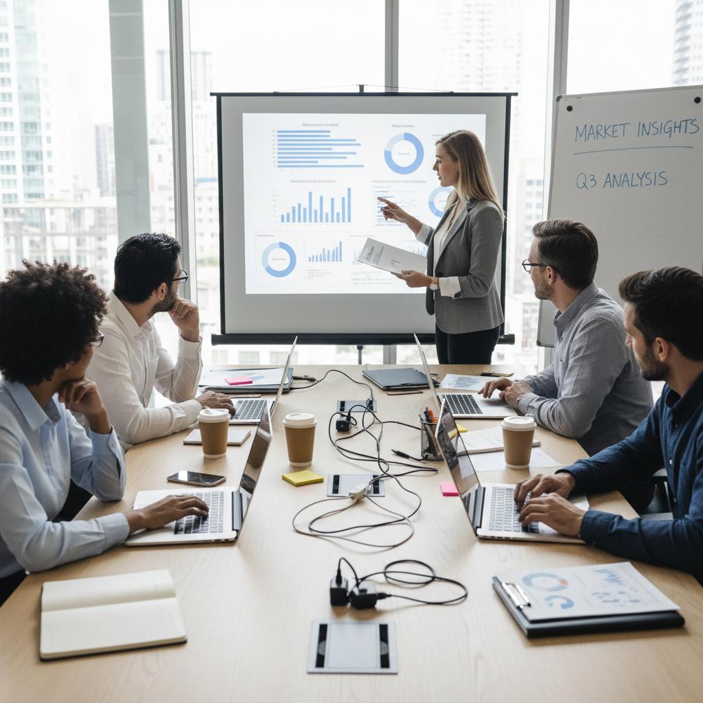 Zespół badawczy porównujący narzędzia online do analiz rynkowych – kluczowy etap wyboru właściwej platformy.